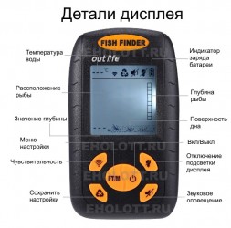 • Шкала глубин и звуковой сигнал при обнаружении рыбы