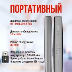 Прибор обладает широким функционалом. Вы сможете гарантировано обнаружить любые радиосигналы, такие как: CDMA, 2G, 3G, 4G, Wi-FI, Bluetooth и GPS.