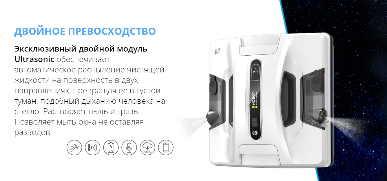 Робот Hobot-2S использует уникальную систему линейного перемещения для идеальной очистки стекла. Он очищает поверхность в два этапа: сначала по горизонтали, а затем по вертикали.
