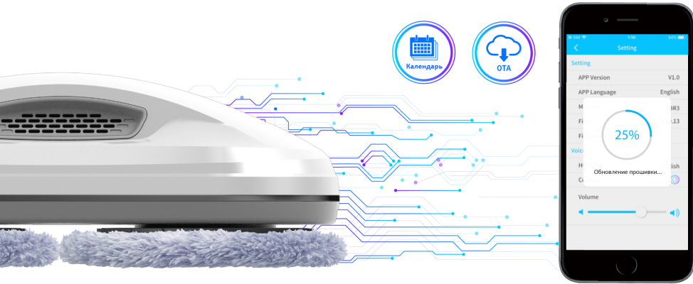Пользователь может самостоятельно "по воздуху" обновить прошивку робота с помощью смартфона, с сохранением данных и настроек. Это гарантирует стабильность работы вашего устройства и актуальность программного обеспечения. Следите за новейшими функциями, регулярно обновляя прошивку HOBOT по беспроводной сети (OTA), каждые 3 месяца HOBOT будет присылать вам напоминания о необходимости зарядить аккумулятор, чтобы ваш робот всегда был исправен и готов к мойке окон!